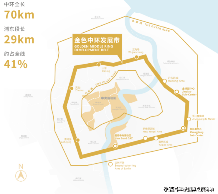 区域内三林滨江、筠溪小镇、新杨思都属于浦东金色中环带上的主要构成部门.
